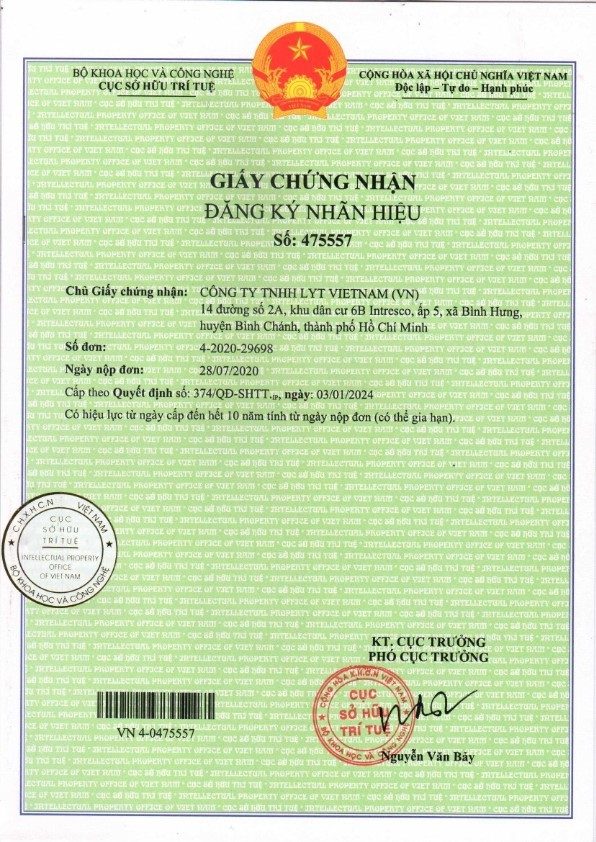 Với giấy chứng nhận bảo hộ thương hiệu, Công Ty TNHH LYT cam kết sẽ tiếp tục nỗ lực cao nhất để nâng cao chất lượng sản phẩm và dịch vụ, không ngừng sáng tạo và đổi mới nhằm đáp ứng tốt nhất nhu cầu của khách hàng. Chúng tôi sẽ luôn là người bạn đồng hành tin cậy, sẵn sàng giúp khách hàng giải quyết mọi khó khăn và thách thức.